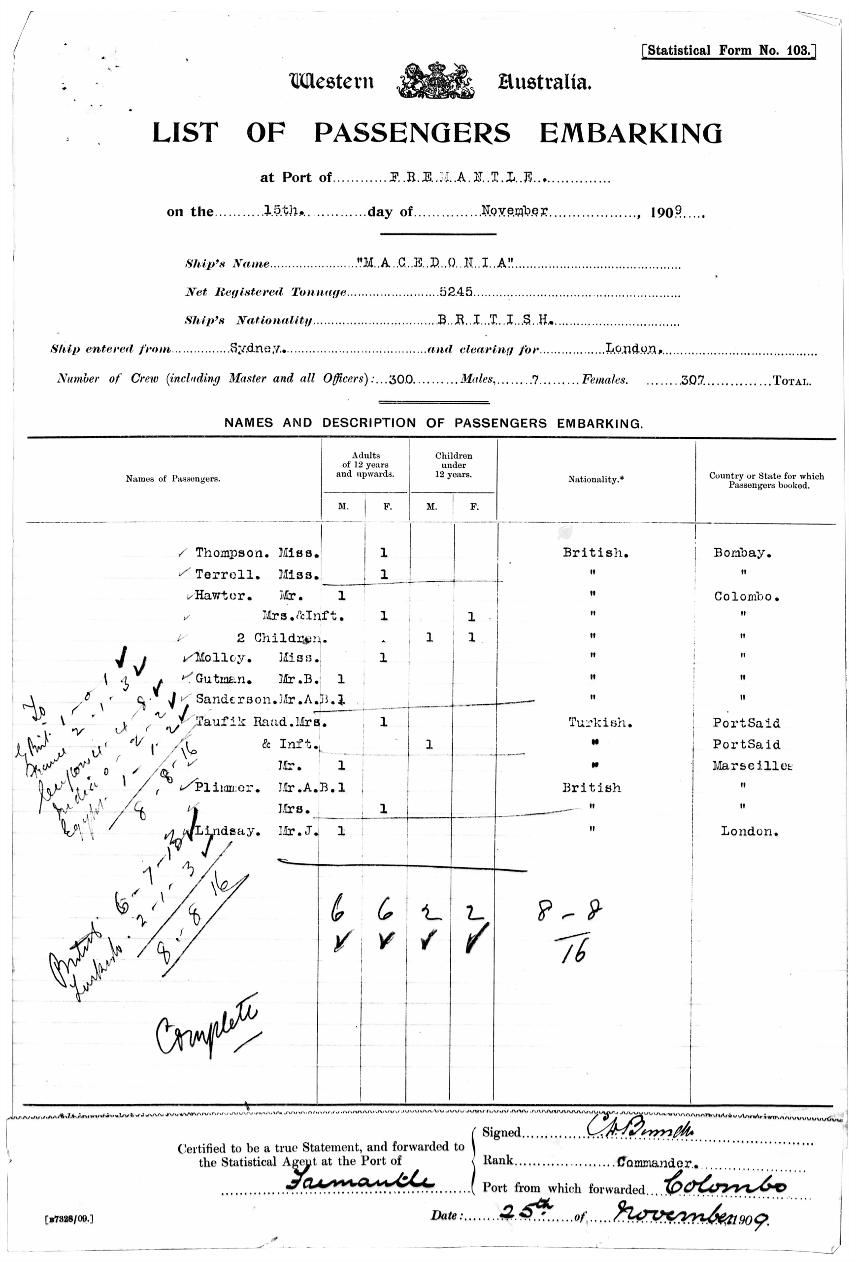 List of passengers embarking
